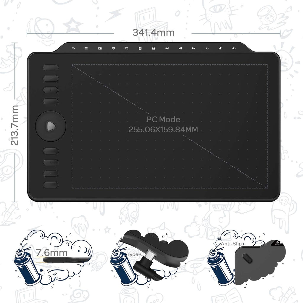 Denne produkt er en avanceret grafisk tegneplade med 12-tommers arbejdsområde, batterifri pen, 8192 trykniveauer, tilt-support og et stort antal hurtigknapper for effektiv digital skabelse. Den fungerer med Windows, Mac OS og Android, hvilket gør den ideel til digital illustration, foto-/videoredigering, noter, onlineundervisning og signering.