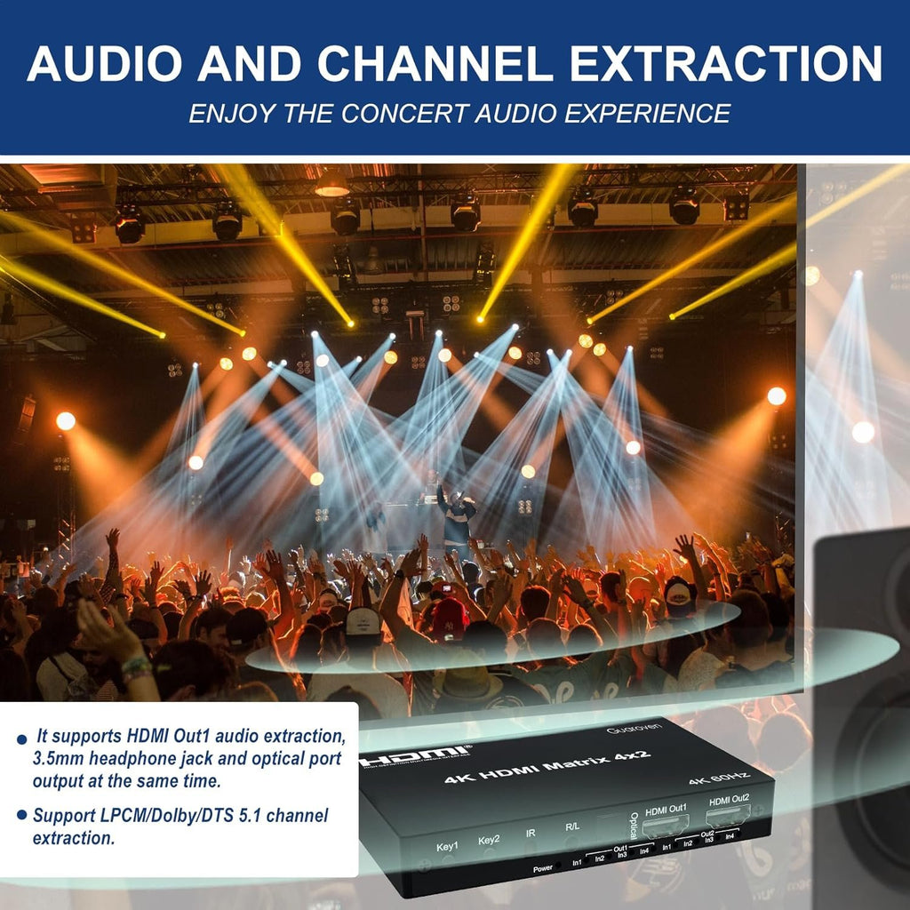 NÖRDIC HDMI 4K 60Hz Matrix switch 4x2 3D Video Toslink Stereo EDID