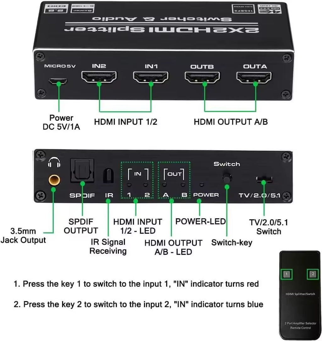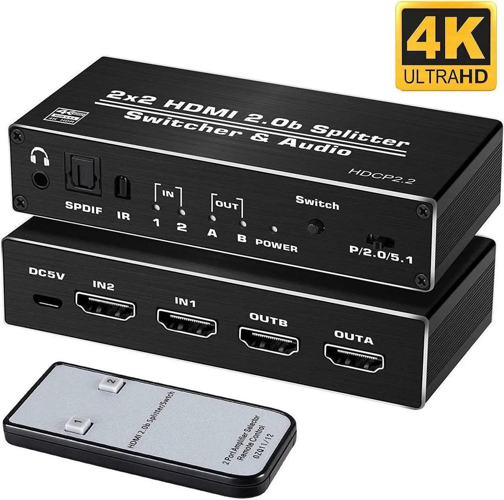 NÖRDIC HDMI 4K 60Hz Splitter 2x2 with Audio SPDIF and Stereo with remote control