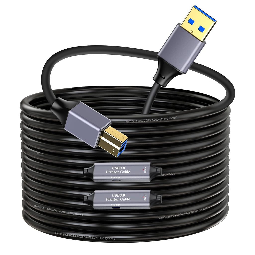 NÖRDIC USB 3.0 Aktiv Printerkabel - 10m USB A til USB B 3.0 Kompatibel med printer, konferencerkamera, dockingstation, harddisk og mere