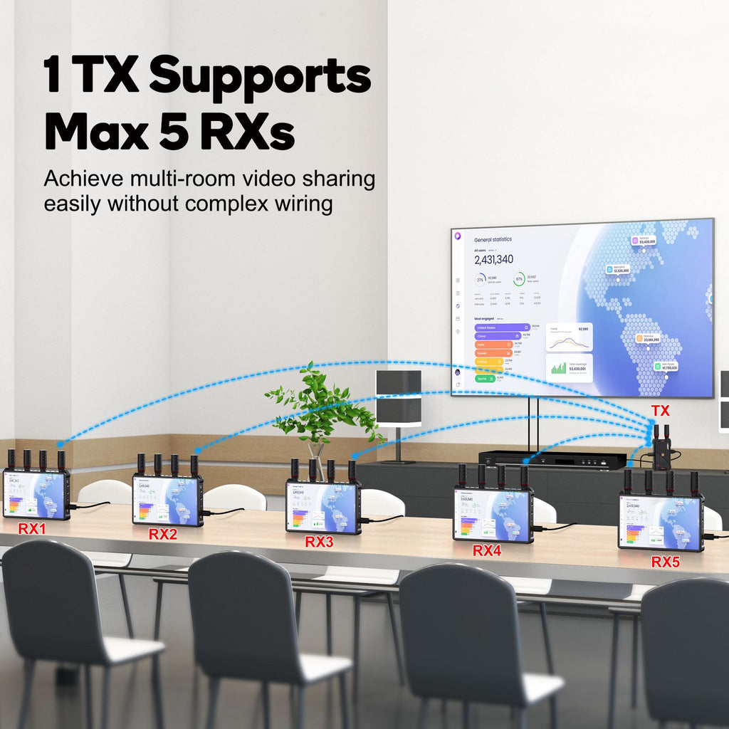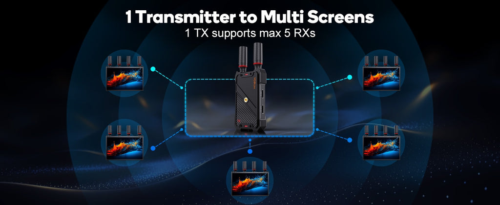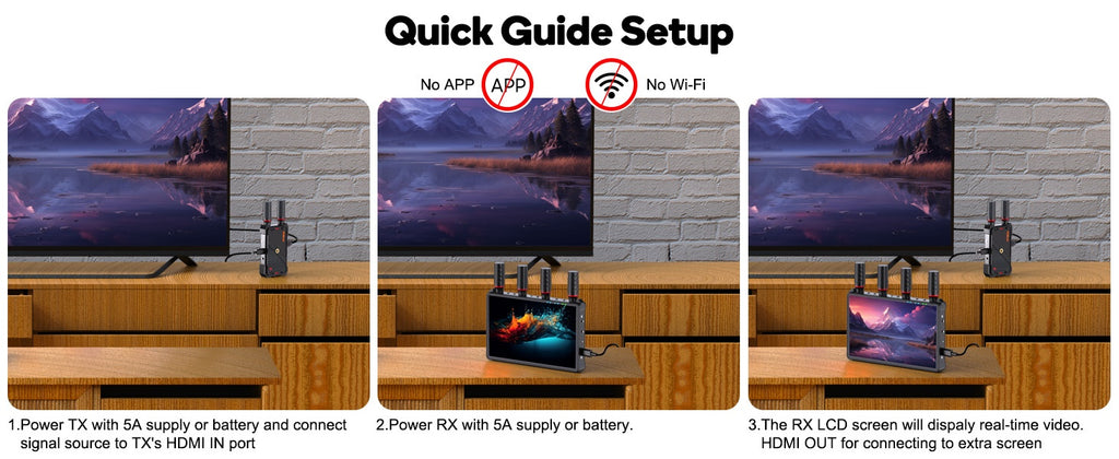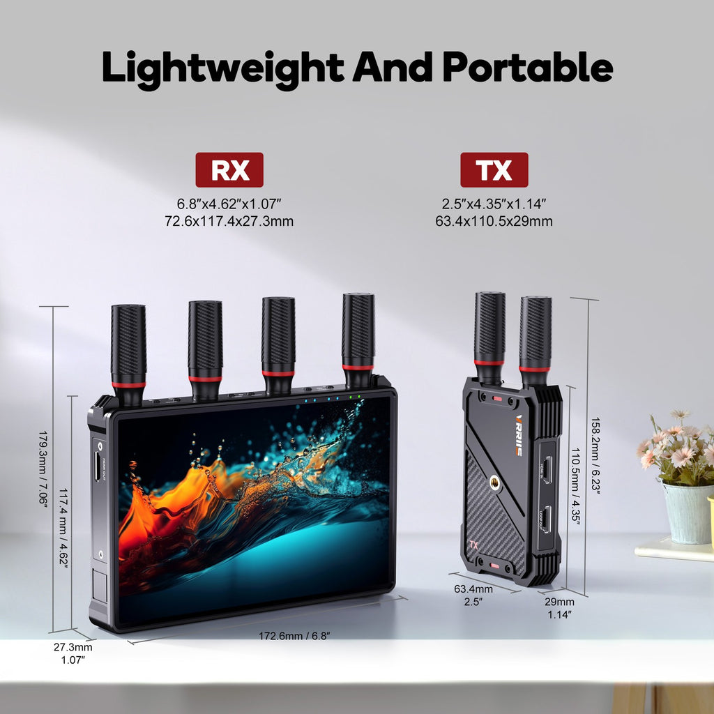 NÖRDIC Trådløs Bærbar 7" skærm, video sender og modtager, 2.4G/5.0G, 4k HDMI INPUT / 1080p OUTPUT, 400m